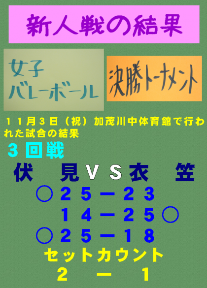 新人戦の結果 女バレー 決勝トーナメント