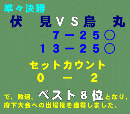 で,敗退。ベスト8位となり,府下大会への出場権を獲得しました。