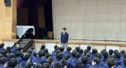 4月6日(木)登校後、新クラスの発表が行われ、令和5年度の着任式・始業式が行われました。まずは、本年度伏見中に赴任された教職員を校長先生が紹介し、代表生徒が歓迎の言葉を述べました。