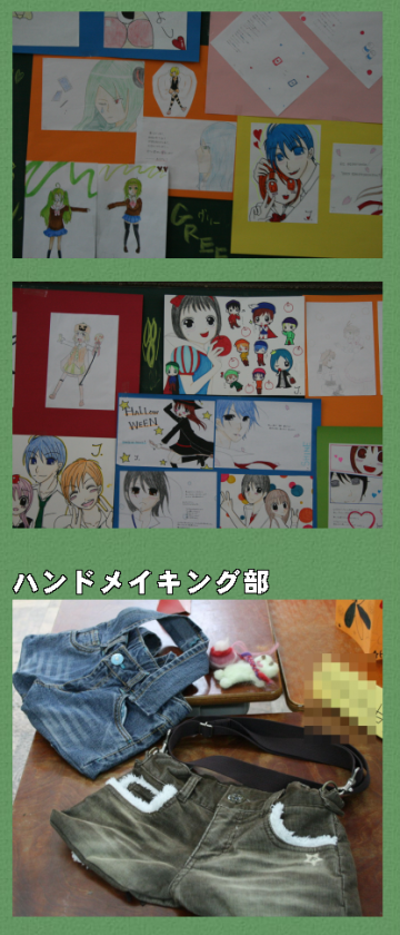 ハンドメイキング部・創作部の作品も展示されました。また,2年生家庭科の夏休みの課題【調理実習レポート】も展示されました。
