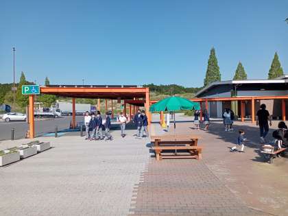 土山サービスエリアに到着しました。ここを出ますと、長島スパーランドまでノンストップです!