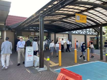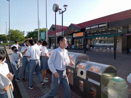 白馬までの最終サービスエリア、梓川を今から出発します。周りの山々の緑が眩しいです。