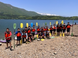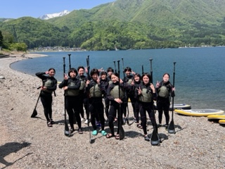 青木湖でのSUP(スタンドアップパドルボート)体験のようす