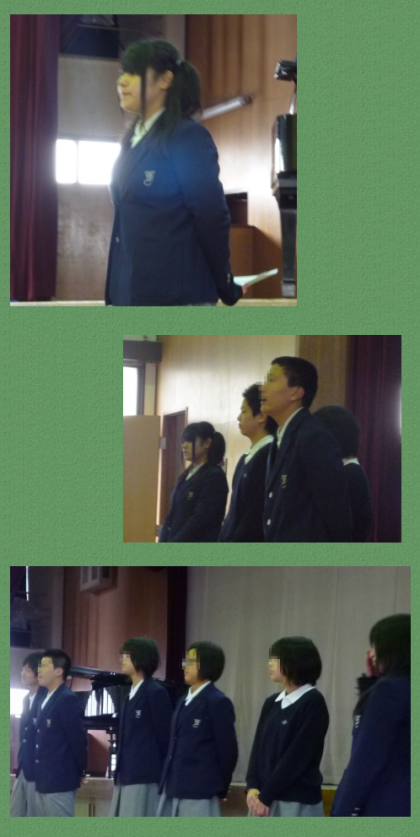 3月7日(水)公立一般入試を終えた3年生。各クラス2名からなる卒業委員会の進行で『3年生を送る会』の学年練習が体育館で行われました。学年合唱では「虹」を歌います。