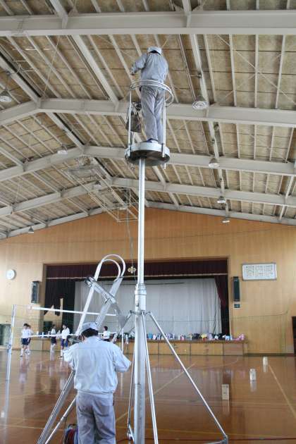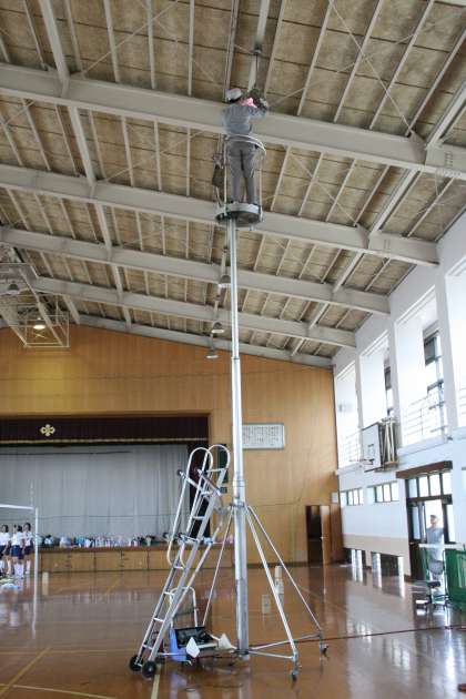 体育館の水銀灯の交換