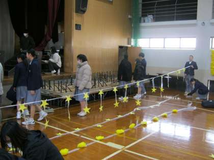3月7日(木)今日は3年生の公立中期選抜が行われました。朝から、緊張した様子で試験会場に向かう姿が見られました。そのような中、放課後には明日の「3年生を送る会」に向けて体育館で会場準備が行われました。明日のために各学年で作った装飾を飾り付け、会場はとても華やかになりました。3年生にとって、思い出深い、送る会になることを期待しています!