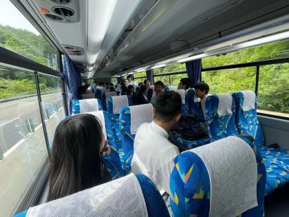 各クラス、伝言ゲームなどバスレクで盛り上がっています