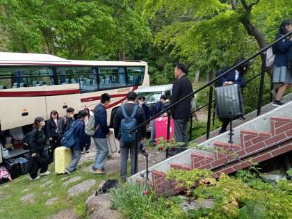 ペンション到着、それぞれのペンションにて入館式を行います。