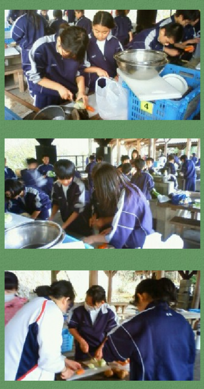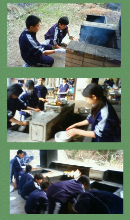 夕食作りが始まりました。班員全員が協力しての飯ごう炊飯です。.