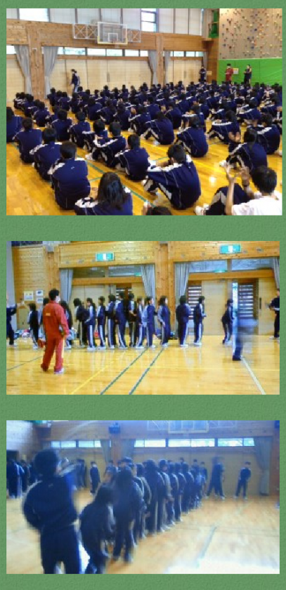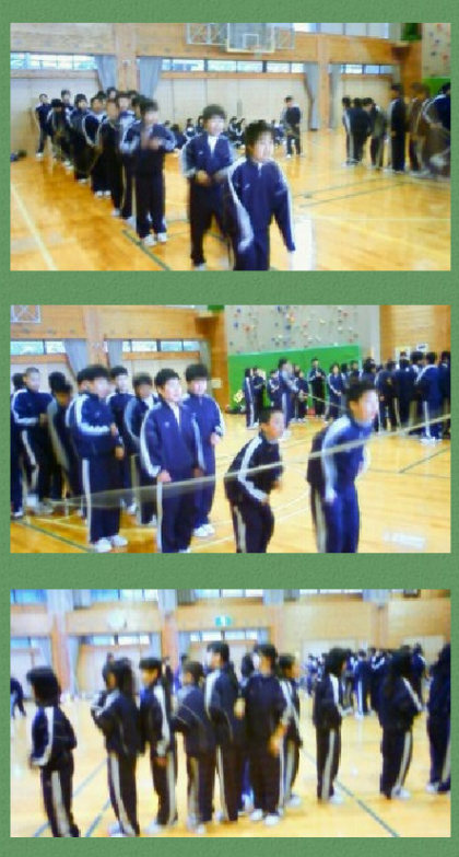 雨のためプレイホールでのスポーツ活動です。大縄跳び大会では,全員の気持ちを一つに頑張りました。スポーツ活動のあとは,通学服に更衣をして昼食です。.