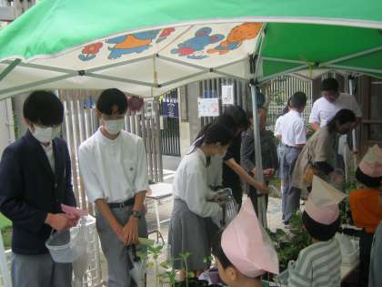 6月25日(火)の2・3時間目、8組は生活・自立の時間に板橋幼稚園を訪問させていただきました。この日は板橋幼稚園の取組で、園児が育てた苗をお店屋さんにして、お客さんに渡すといったので、事前に中学校にも案内を届けてくれました。園児の皆さんに丁寧に接客をしていただき、緊張気味の中学生でした。たくさん頂いた苗を、心を込めて育てたいと思います。園児の皆さん、本当にありがとうございました。
