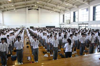 8月24日(月)学校が始まりました!みんな元気よく登校してきました。また,本日より3週間の教育実習もはじまります。実習生が挨拶をしました。