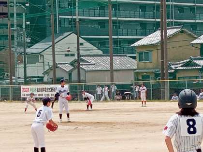 7月6日(土)夏季大会の1回戦が殿田公園野球場で行われました。1回戦の対戦相手は藤森中・八条中・花山中の合同チーム。序盤に1点を先制するものの中盤に1点を返されて同点。重苦しい雰囲気の中でしたが、ホームランを含む2点を取り、見事守り抜き,3−1で勝利しました。非常に暑い中でしたが、集中力を切らずにプレーする姿が見られました。2回戦もこの調子で頑張ってほしいと思います。