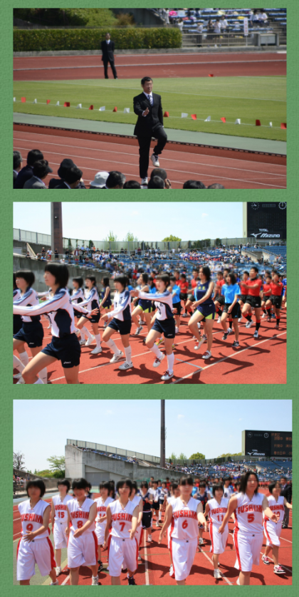 4月29日(日・祝)第54回京都市中学校春季総合体育大会の開会式が西京極陸上競技上で行われました。選手入場の先導は,本校ラグビー部顧問のI.Ryuji先生。伏見中学校からも生徒会長はじめ,各運動部の代表総勢100名が参加しました。そして,伏見中学校の代表としてきびきびとした入場行進を行ってくれました。また,選手宣誓はラグビー部主将のO.Yuki くん,堂々とした立派な宣誓をしてくれました。