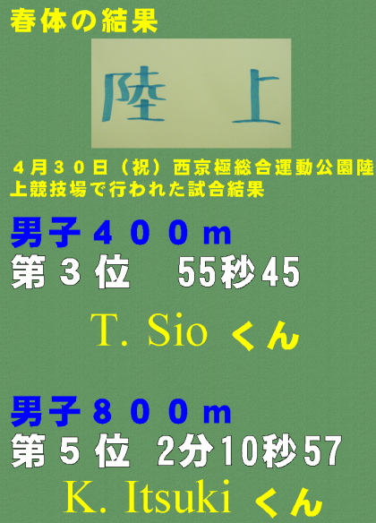 春体の結果 陸上部