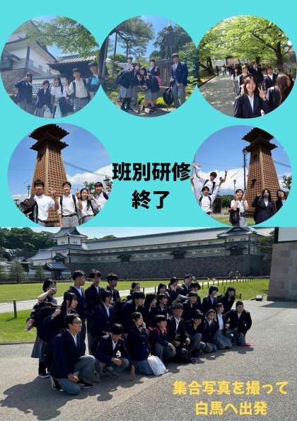 すべての班が時間通りに集合場所へ到着しました。15時に金沢を出発し,宿泊地である白馬のホテルへ向かっています。ホテルには17時45分頃に到着予定です。