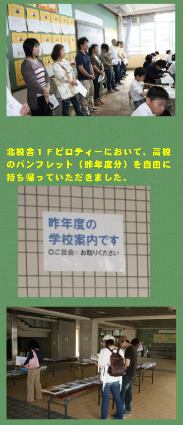 6月3日(日)日曜参観が行われました。保護者の方,地域の方,学校関係者などの参観総合計は710名でした。多くの方々の参観,本当にありがとうございました。授業参観後の学級懇談会,1年生は花背山の家での宿泊学習,3年生は修学旅行のビデオ報告会も行われました。2年生は体育館で学年懇談会があり,チャレンジ体験学習の説明もありました。その後,各部ごとの部活動保護者会があり,部活見学会も行われました。