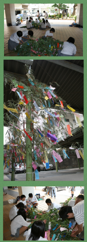 7月7日は七夕。この日にちなんで,文化委員会が七夕飾りを企画し,6月29日(金)の放課後に飾り付けが行われました。みんなの願い事が書かれた短冊が一竿に二百枚ほどつられている様子はまさに壮観です。七夕飾りは,7月11日(水)まで飾られます。