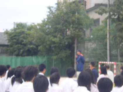 9月1日の防災の日にちなんで,『避難訓練』を9月9日(水)に行いました。校舎からの出火を想定して行われた訓練ですが,みな真剣に取り組むことができました。消防署の方からもお話しをしていただきました。