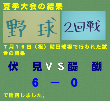7月16日(祝)殿田球場で行われた2回戦の結果
