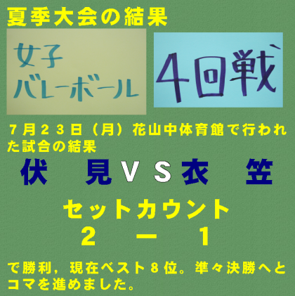 夏季大会の結果 女子バレー部