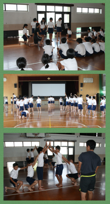 1年生は体育大会の団体演技で『組み立て体操 団結 〜仲間とともに〜』を行います。この組み立て体操の練習を体育の授業で懸命に取り組んでいます。