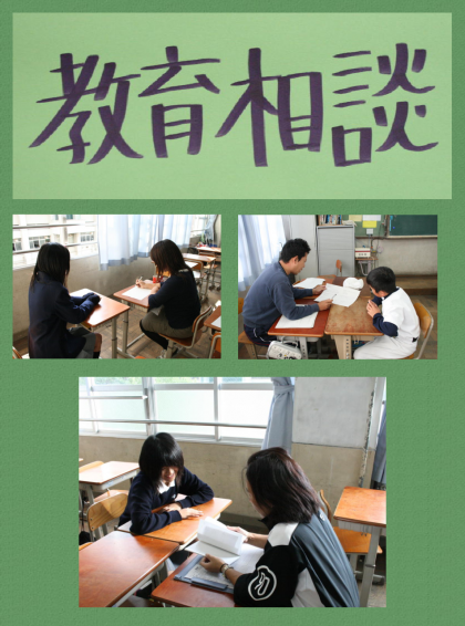 11月2日(月)本日より,1・2年生は担任と生徒の二者による教育相談が始まりました。3年生は卒業後の進路をより確実なものにするために,担任と生徒と保護者の三者による進路相談が始まりました。