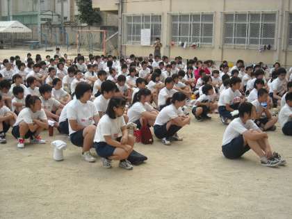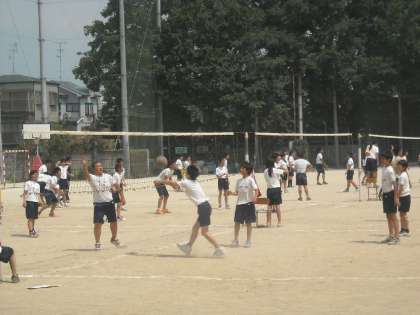 7月12日(金)2年生が学年活動を行いました。念入りに準備運動を行い,バレーボールをしました。