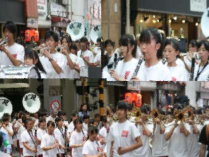 本校が誇る吹奏楽部のマーチングパレードです。休日の大手筋商店街,多くの人々の注目を集めました。