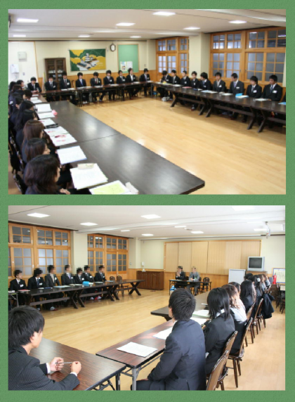 11月25(水)京都教育大学の数学領域専攻の1回生31人が『公立学校等訪問研究』で伏見中学校に来ました。以下の内容で午前中に研修を行いました。どの学生さんもいろいろな事を学びとろうとする積極的な態度が印象に残りました。将来は良き教師に是非なってください!