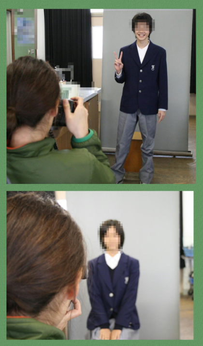 11月25日(水)・26日(木)の2日間を使って,進路用と卒業アルバム用の個人写真の撮影が行われました。撮影される生徒はやや緊張気味でした。