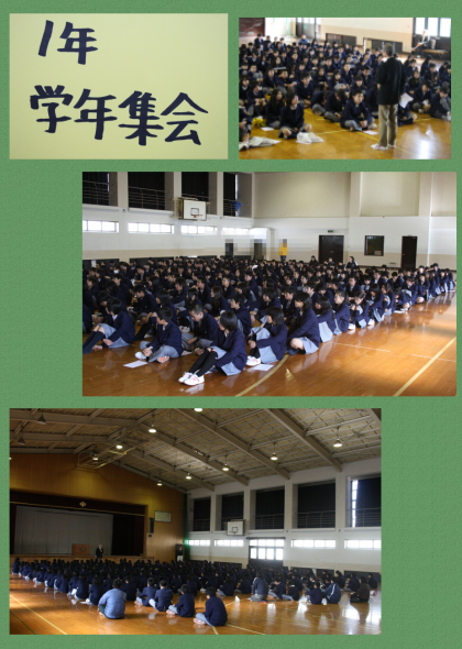 1月6日(水)1年生が進路についての学年集会を行いました。人生を富士山に例え,この1年生は土台となる基礎づくりの時期でとても大切だという話がありました。すそのを大きく大きくしてどんどんと高い夢へと向かって欲しいと思います。