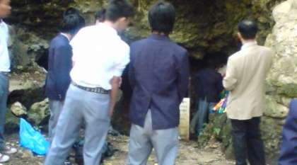 4・5・6組の生徒は入口で話を聞いたあとガマ内へと進んでいきました。