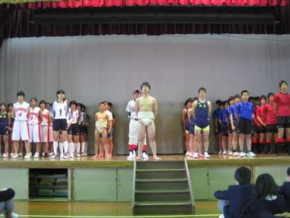 続いて、開会式当日、選手宣誓を行う格技部の主将や放送を担当する代表生徒が紹介され、全校生徒から拍手喝さいを浴びていました。