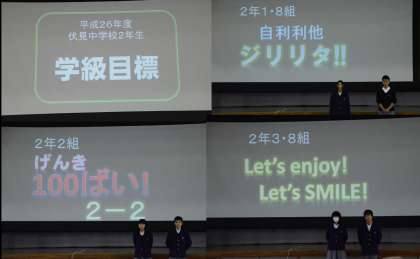 2年生学年集会 学級目標紹介