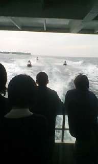 写真は船をインストラクターの方々がジェットスキーで追いかけてきてる