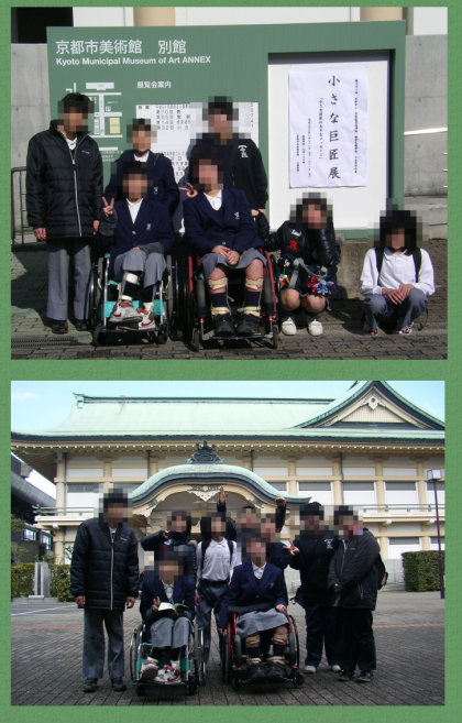1月29日(金)本校の育成学級の生徒が,『小さな巨匠展』(←←京都市内の学校に通う障害がある子どもたちの合同作品展)を見にいきました。この『小さな巨匠展』には育成学級のある小中学校や総合支援学校など市内245校の参加がありました。