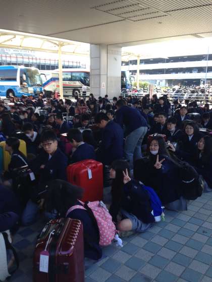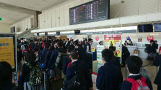 3年生は関西空港,伊丹空港よりそれぞれ沖縄に向かって出発しています。到着は両便とも11時過ぎの予定です。