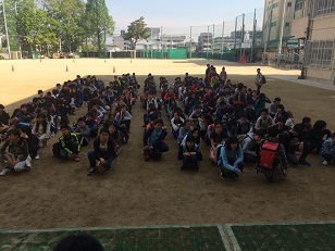 4月24日(金)1年生は校外学習です。学校で集合して「アクトパル宇治」に向かいました。スローガンは〜伏中1年「共働、共汗、共力」TEAM GOLDEN BOND〜です。野外炊飯やレクレーションを通して,集団づくりや仲間づくり,集団の中で自分が考えて行動できる力をつけることを目的として活動を行います。