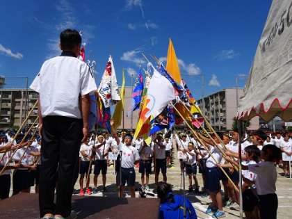6月4日(木)伏中祭体育の部が始まりました。入場行進は吹奏楽部を先頭に生徒会本部,各ブロック色別に行いました。開会式では学校長挨拶,生徒会長挨拶に続いて,体育委員長が生徒宣誓を行いました。競技は10時過ぎから始まりました。進行はプログラム通り行う予定です。変更があればホームページで連絡いたします。