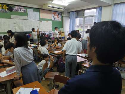 6時間目道徳の時間。学年の先生が得意の授業を、各学級に持ち回る形で実施する、持ち回り道徳の1回目が行われました。