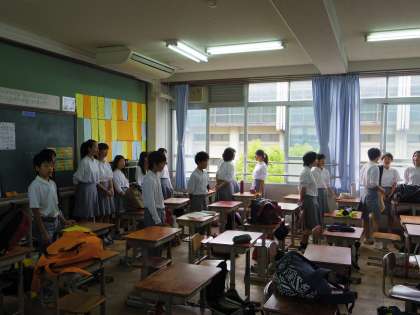 この日、2年生では全クラスが実施しており、多くの生徒が参加していました。