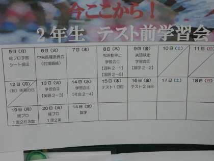今日から、テスト前自主学習会が始まりました。理科と国語が開かれましたが、熱心に勉強する生徒が集まっていました。