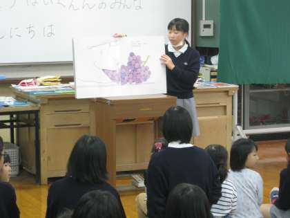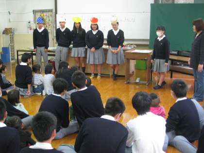 11月9日(月)先週に引き続き、3年生家庭科の授業で幼児との交流を行いました。幼児を膝の上に座らせた3年生は、最高の笑顔を振りまきながら、各々お気に入りの絵本を手に取り読み聞かせを行いました。その後の行われたゲームを通して、互いの友情?は最高潮に達し、別れ際には再会を強く約束しました。