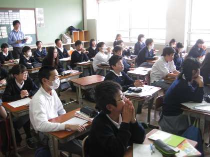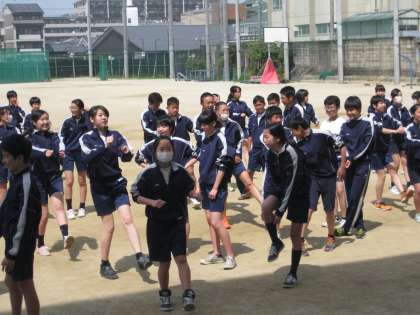 いよいよ平常授業が始まりました。2年生国語科では、インタビューを行って友人の紹介を、また英語科では英文を使って自己紹介を行っていました。3年生体育科では、6月に予定される「伏中祭 体育の部」に向け、早くもその取組みが始まっているようです。