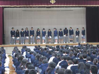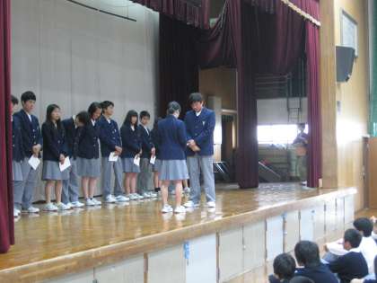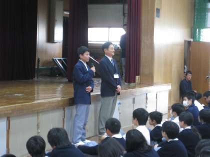 また、その後1年生代表が昨日の校外学習の感想を、そして3年生代表が修学旅行に向けての決意を発表してくれました。
