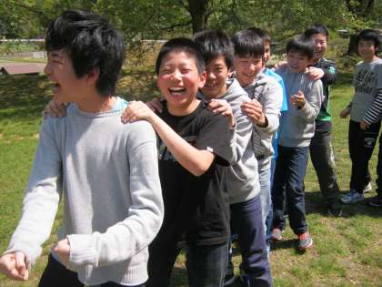 食後は桜の広場でレクレーションを行いました。「じゃんけん列車」と「伏中先生○×クイズ」というゲームをやり、司会の生徒もしっかりと進行を行っていました。天候にも恵まれ、みんな楽しそうにレクレーションを行っていました。