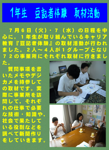 1年 豆記者体験 取材活動