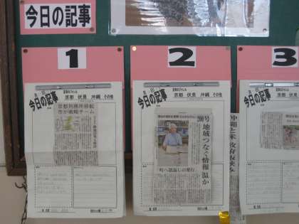 近隣の新聞販売店のご厚意により、伏見中には全クラスに朝刊が無料で配布されています。休み時間に気になる記事を読んだり、担任の先生が新聞を使って学活の時間に話をしたりしています。