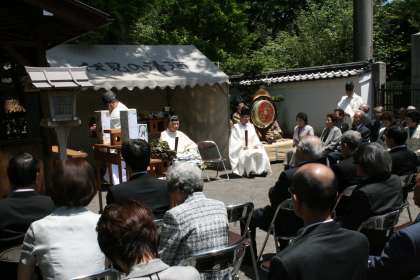 平成21年5月18日(月)御香宮神社において『伏見義民祭』が行われました。伏見中学校では総合的な学習の時間に地域調べとして、何度かこの【伏見義民】についついても学習してきました。この『伏見義民祭』は、今から約200年前、当時の伏見奉行 小堀政方の政治から伏見の町を救う為に一身一家を擲ち悲惨な最期を遂げた7名の慰霊祭を毎年5月18日に御香宮境内の「伏見義民碑」前にて斎行しているものです。